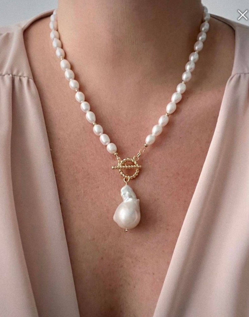 244-*Dây chuyền hạt gạo kết hợp 1 viên ngọc