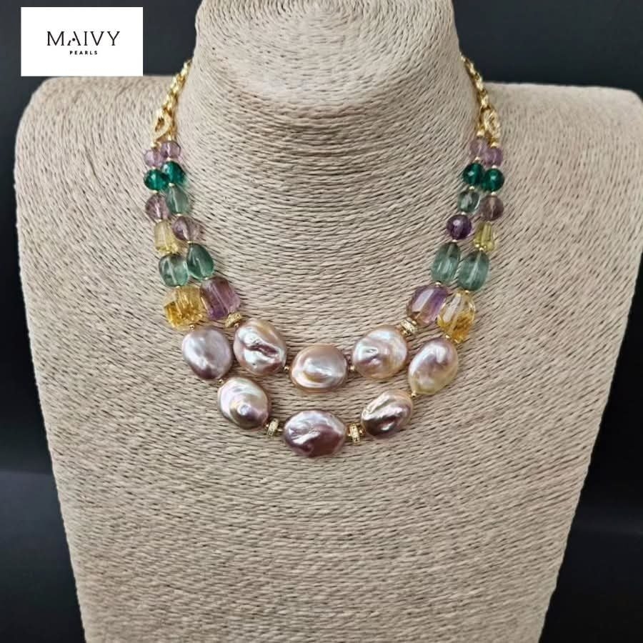 dây chuyền đôi Baroque mix đá
